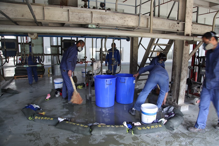 為了檢驗公司在疫情特殊時(shí)段的應急救援能力,增強疫情期間公司消防安全意識,保障疫情期間的安全生產(chǎn),3月11日下午,公司在生產(chǎn)車(chē)間二樓高位槽區組織開(kāi)展了車(chē)間高位槽原料泄漏應急救援演練。 整個(gè)演練過(guò)程模擬真實(shí)突發(fā)事故。假設場(chǎng)景為生產(chǎn)過(guò)程中,因高位槽閥門(mén)損壞,導致二甲苯泄露,車(chē)間人員經(jīng)過(guò)時(shí)發(fā)現二甲苯泄露,事故現場(chǎng)存在火災隱患,嚴重威脅到車(chē)間現場(chǎng)員工人身安全和財產(chǎn)安全。隨著(zhù)泄露量的逐漸增加,總指揮宣布啟動(dòng)Ⅱ級響應。在應急救援過(guò)程中,生產(chǎn)部組織的第一救援力量、第二救援力量有效配合,對泄露溶劑地區域進(jìn)行筑堤圍堵、收集,控制了溶劑擴散;機修組快速響應,及時(shí)進(jìn)行搶修,從源頭堵住泄漏;微型消防站人員3分鐘響應,快速到達現場(chǎng),補充滅火救援力量;治安警戒組、疏散引導組也有序開(kāi)展警戒、疏散工作;通訊聯(lián)絡(luò )組、醫療救援組迅速集結待命。經(jīng)過(guò)大家的努力,險情得到有效控制,檢測人員現場(chǎng)采樣分析,現場(chǎng)各項指標符合環(huán)境安全要求,現場(chǎng)收集物資處置符合安全、環(huán)保要求??傊笓]宣布應急響應結束。 演練結束后,現場(chǎng)指揮部對各演練人員的協(xié)同應急響應能力給予了肯定,對演練存在的不足和有待改進(jìn)的地方做了講評,并針對當前疫情防控工作做了再強調、再動(dòng)員,確保疫情期間生產(chǎn)工作安全有序進(jìn)行。